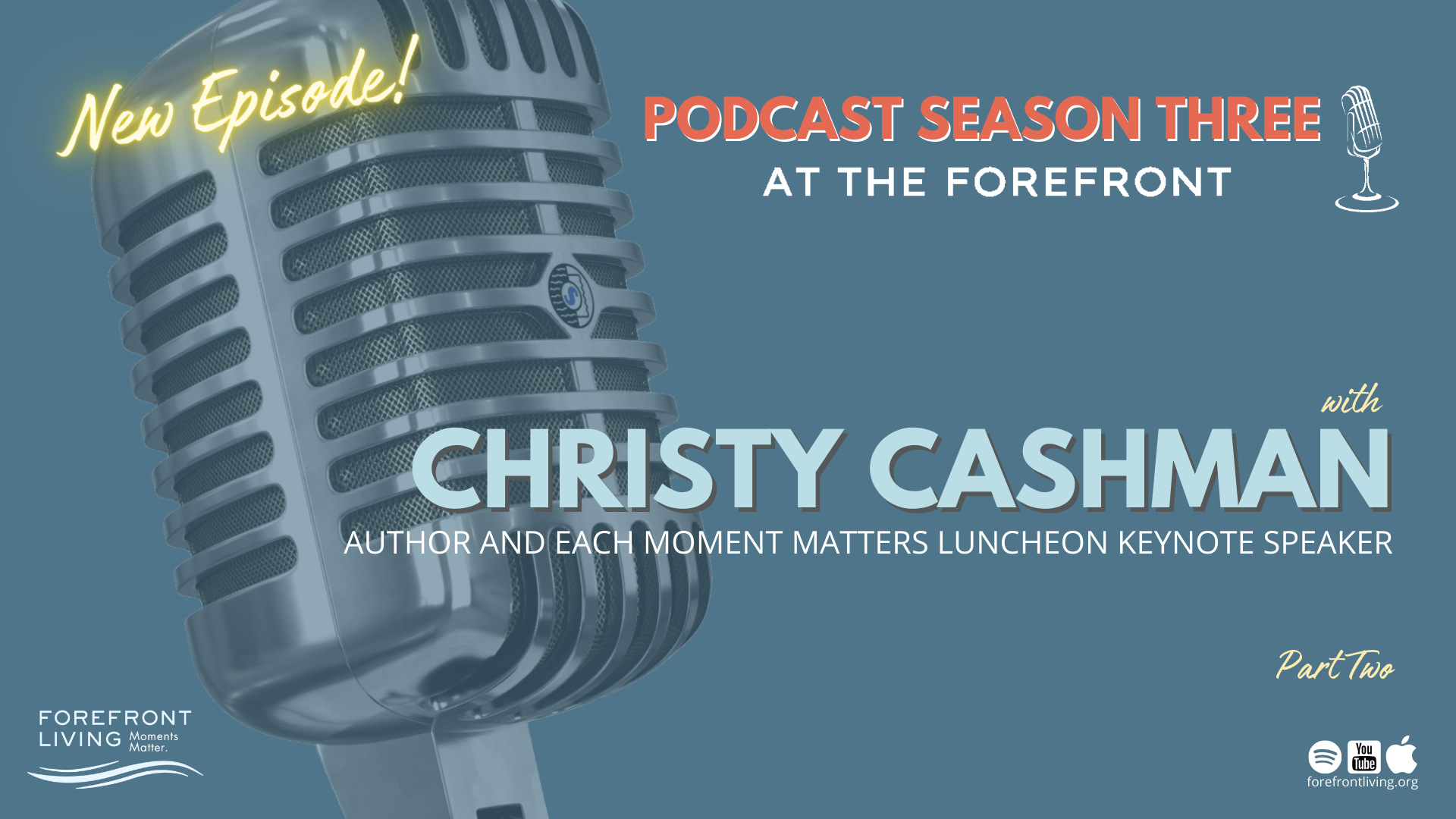 In this episode of Forefront Living’s At the Forefront podcast, host and Forefront Living CEO Tim Mallad, sits down with Christy Cashman, author of The Truth About Horses, who shares the story behind being the keynote speaker at this year’s Each Moment Matters Luncheon, benefiting Faith Presbyterian Hospice and the Faith Caring Fund. Christy discusses the powerful themes of family, grief and healing explored in her novel, reflecting on the profound message she hopes readers will take away from the journey of the novel’s protagonist, Reese. Tune in to this enlightening episode to learn more about the powerful themes behind her book and how it has impacted readers.