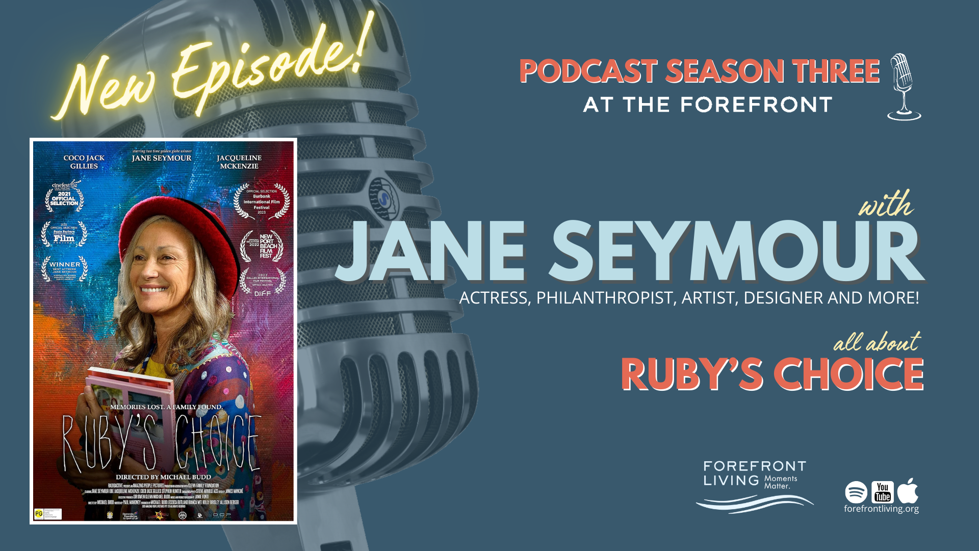 In this very special episode, host Tim Mallad interviews renowned actress Jane Seymour, star of the film Ruby’s Choice. The movie tells the touching story about a family’s journey with dementia, offering both hope and inspiration for living life fully. Tim and Jane explore the film’s creation, discuss the challenges of filming during the pandemic and delve into how the movie educates viewers about the realities of dementia and Alzheimer’s disease. Additionally, they explore the benefits of choosing a senior living community that specializes in memory care for those facing these challenges, highlighting how these specialized environments and professional support can greatly enhance the quality of life for individuals with dementia and their loved ones. Tune in to this insightful episode to gain valuable knowledge about supporting those living with memory care issues. Learn more about Ruby’s Choice here: https://dementiafoundation.org.au/rubys-choice/