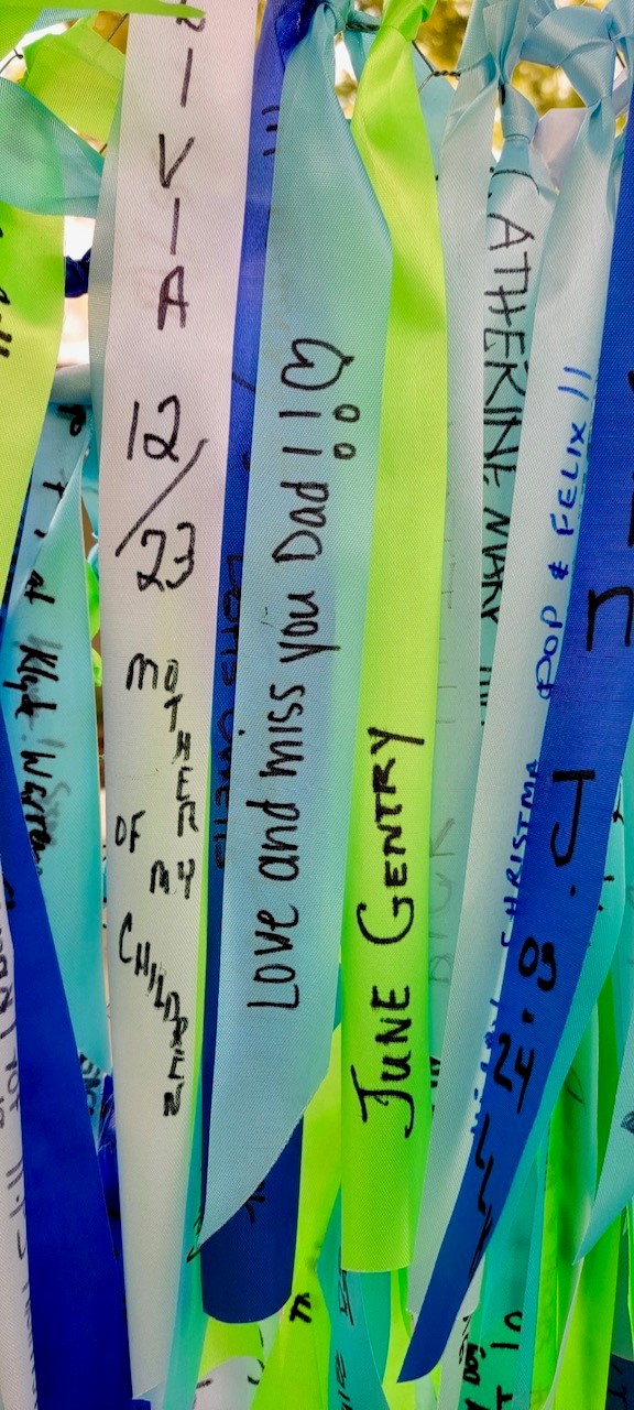 If you are unable to visit the Arch before Dec. 15, but still wish to celebrate your loved one, please click here to request for a ribbon to be added on your behalf. After Dec. 15, ribbons will be removed and added to the River of Time art installation. Each year, Pamela H. Nelson, a local artist, adds thousands of ribbons to the art installation with the help of many volunteers. To date, more than 15,000 ribbons have been included in the art piece. Currently, visitors are welcome to view the River of Time exhibit at the Sixth Floor Museum at Dealey Plaza. Click here for more information.
