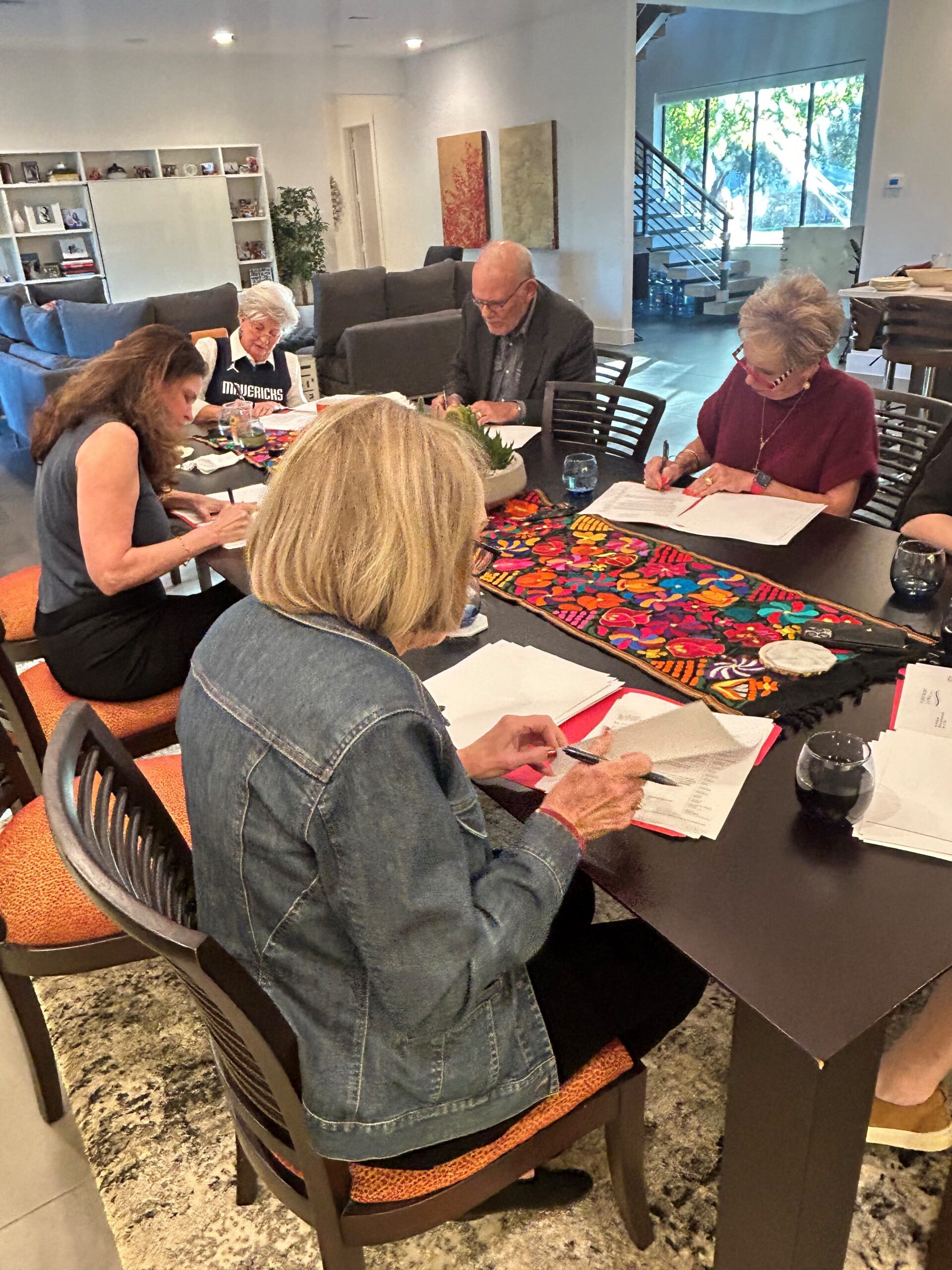 FLF End of Year Appeal Kicks Off Post date November 11, 2024 The Forefront Living Foundation (FLF) End of Year Campaign committee gathered on Wednesday, November 6, at the lovely home of Katie and Neal Doherty, to sign letters supporting the Faith Caring Fund. Committee members include Cathy Bruff, Pam Busbee, Elizabeth Gambrell, Julia Glasgow and Jan and Arnie Holtberg. The End of Year Appeal raises critical funds for the ongoing work of the Faith Caring Fund, providing charitable care, grief support, therapeutic services like massages and music therapy, Faithful Wishes and specialized clinical care at the T. Boone Pickens Hospice Center. In 2023, the appeal raised an impressive total of more than $126,000. A heartfelt thank you goes out to the committee members for their dedication and partnership and to Katie Townend Doherty, this year’s Each Moment Matter’s Co-Chair, for graciously hosting the gathering and for her continued support of FLF and our mission to make each moment matter for those we serve. ← Older Posts Newer Posts →