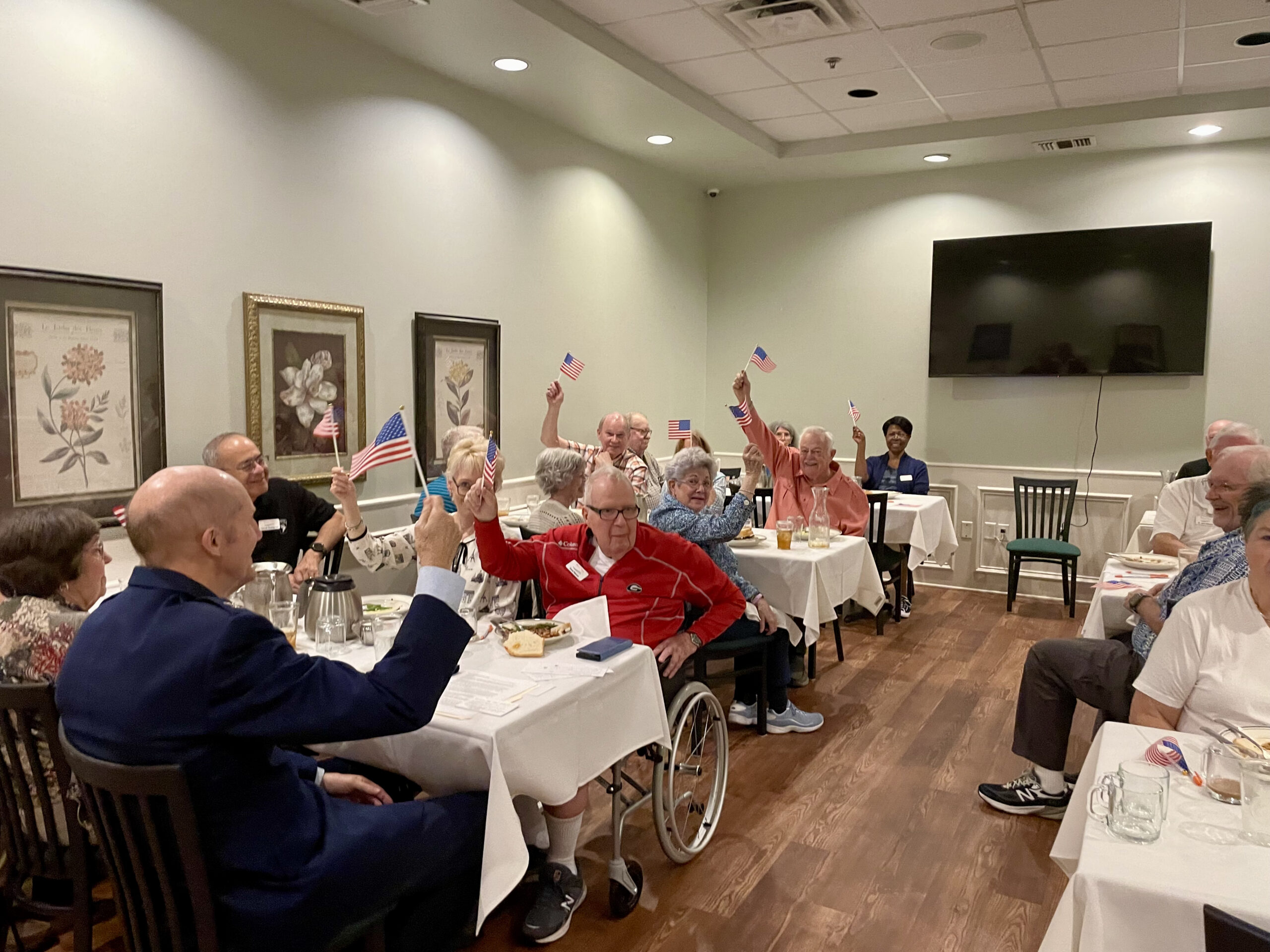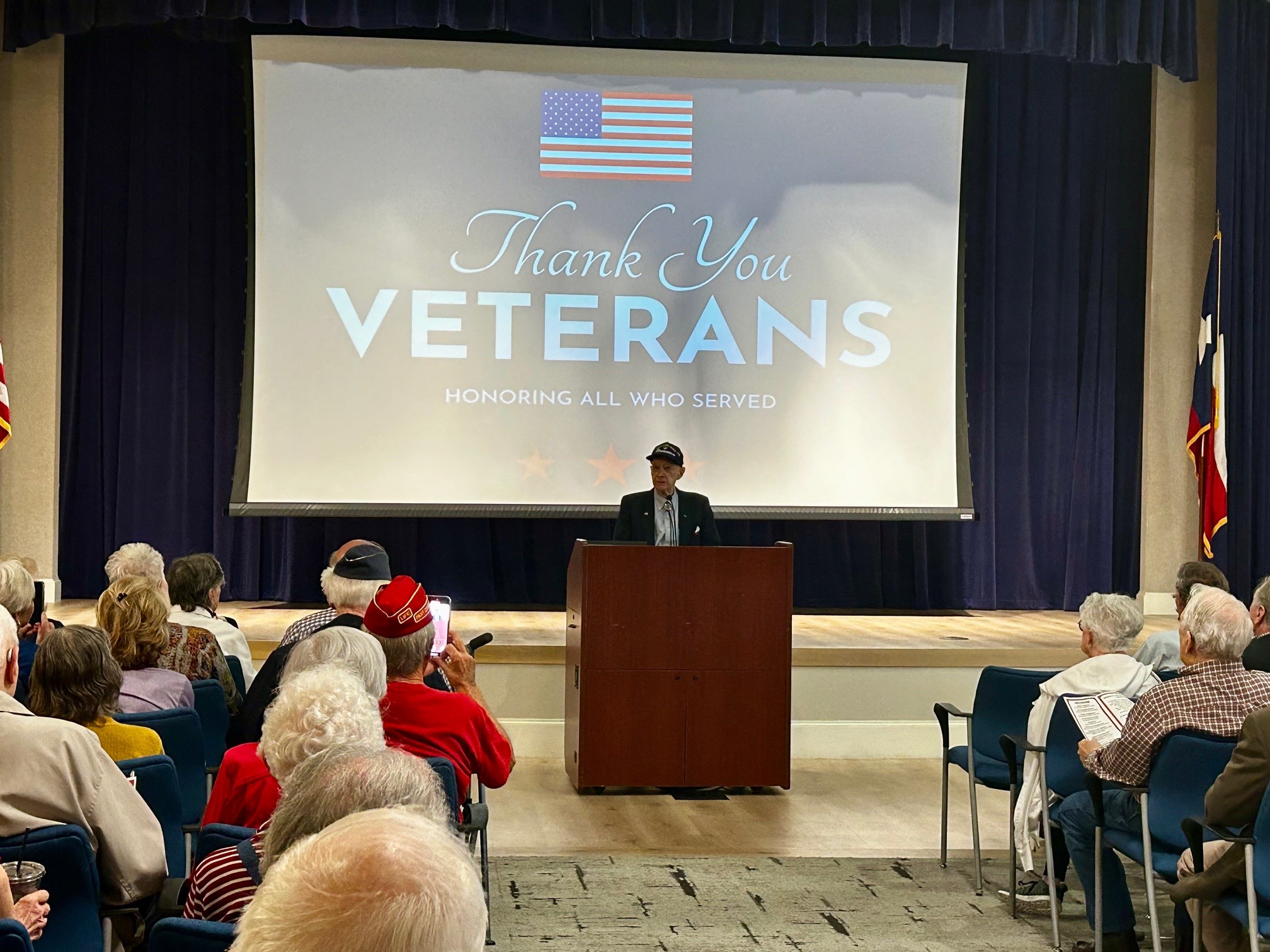 In honor of Veterans Day, each of Forefront Living’s (FL) senior living communities celebrated the brave men and women who have selflessly served our country. Bella Vida, in San Antonio, held a special Veterans Appreciation Luncheon at Magnolia Pancake Haus to honor the community’s resident veterans. The lunch featured guest speaker Don Gleeson, a retired Colonel in the U.S. Air Force with 27 years of service as a civil engineer in various posts around the world.