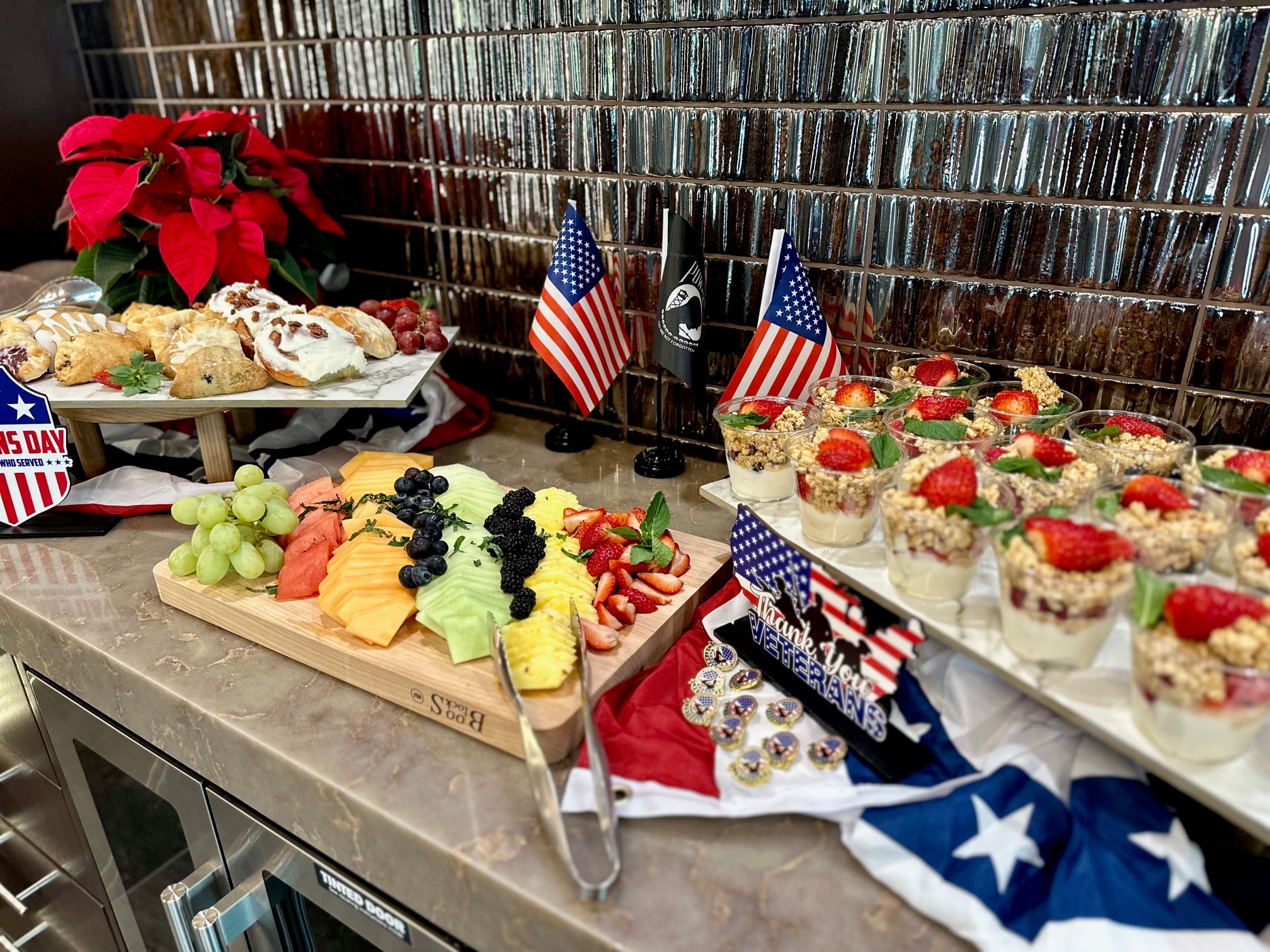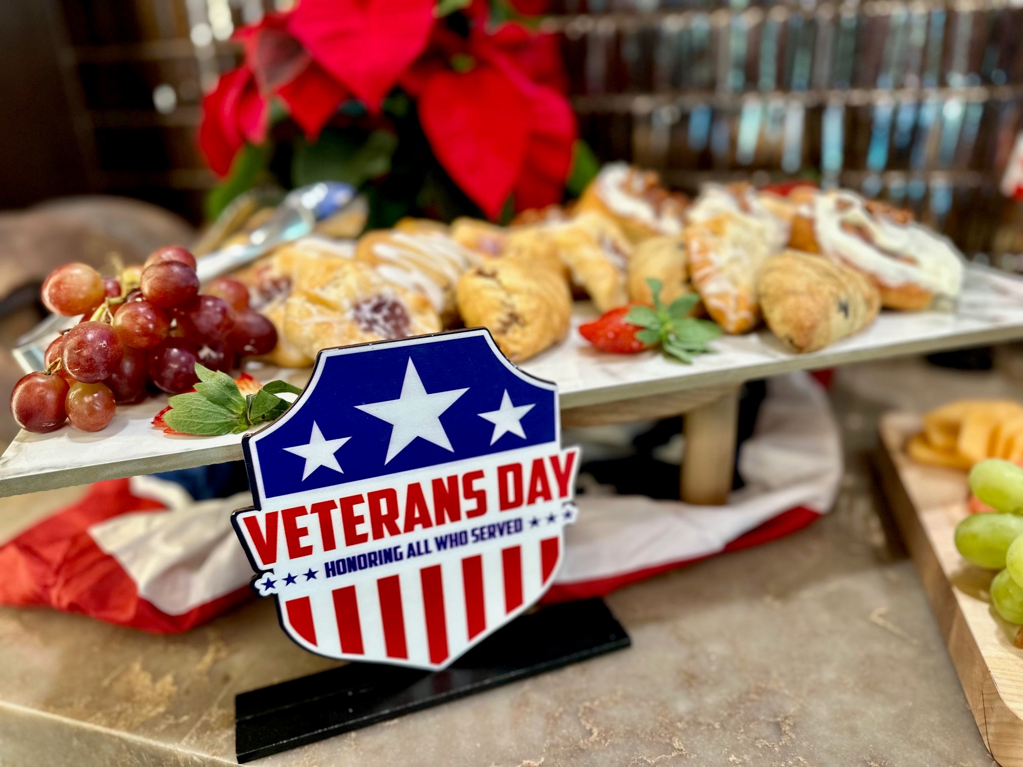 The Outlook at Windhaven honored resident veterans with a morning Veterans Coffee Social, treating them to coffee, patriotic mugs and delicious breakfast treats.
