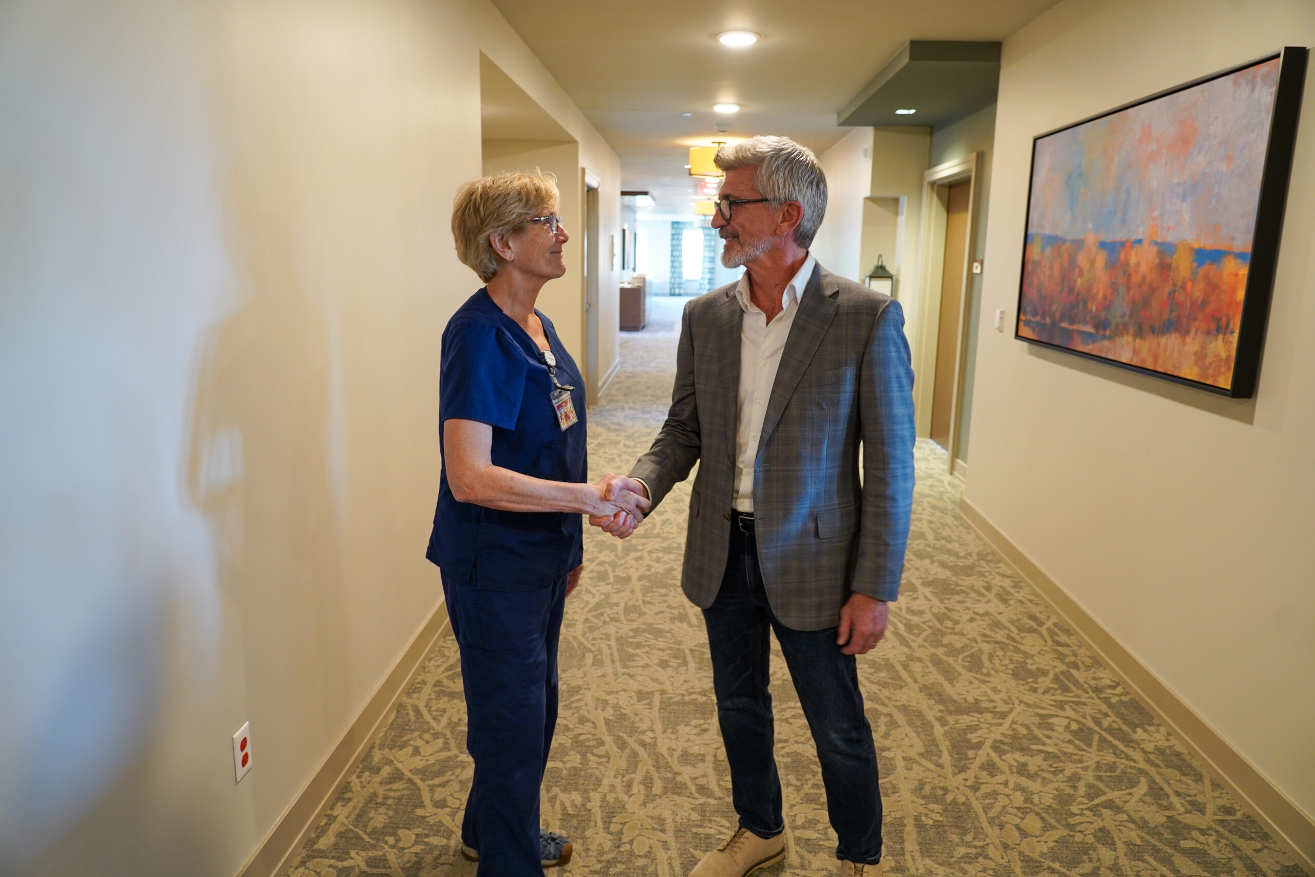Joe Lando Finds Meaning in Each Moment During Visit to Dallas Post date October 17, 2025 Before taking the stage as keynote speaker for the Each Moment Matters Luncheon (EMM), actor Joe Lando arrived in Dallas a day early to experience Forefront Living’s (FL) mission, vision and values firsthand. Best known for his role as Byron Sully on Dr. Quinn, Medicine Woman, Lando toured the T. Boone Pickens Hospice Center (TBPHC), where he gained a personal understanding of the compassionate care that defines FL. Accompanied by Forefront Living CEO Tim Mallad, Joe Lando explored the campus with several teammates: Diane Fullingim, Executive Director of the Forefront Living Foundation (FLF); Melora Hartman, Director of Clinical Services at Faith Presbyterian Hospice; Rita West, Volunteer Coordinator; Lauren Barr, Inpatient Social Worker; and Jennefer Dixon, Music Therapist. The tour began on the first floor of the TBPHC with a walk through the common areas. The group then visited a patient room and spoke with RN Educator Deanna Davies, who shared stories of her work. During the tour, Lando also had a brief meeting with a patient. The visit included a stop at the Children and Family Bereavement Center, where he met members of the FLF team and learned how they support families through loss and healing. The next day, Lando brought his message full circle during his keynote address at the EMM Luncheon. He spoke candidly about losing his home in the Pacific Palisades fire earlier this year, sharing how grief, gratitude and the kindness of friends and strangers have shaped his journey forward. His story of loss and renewal deeply moved the audience, echoing the luncheon’s theme of finding meaning and strength in each moment. Lando’s visit served as a touching reminder that compassion connects us all, whether through the care of a hospice team or the generosity of a helping hand when life takes an unexpected turn. Photos by Sarah Macias by Wendy Van Bemmel ← Older Posts Newer Posts →