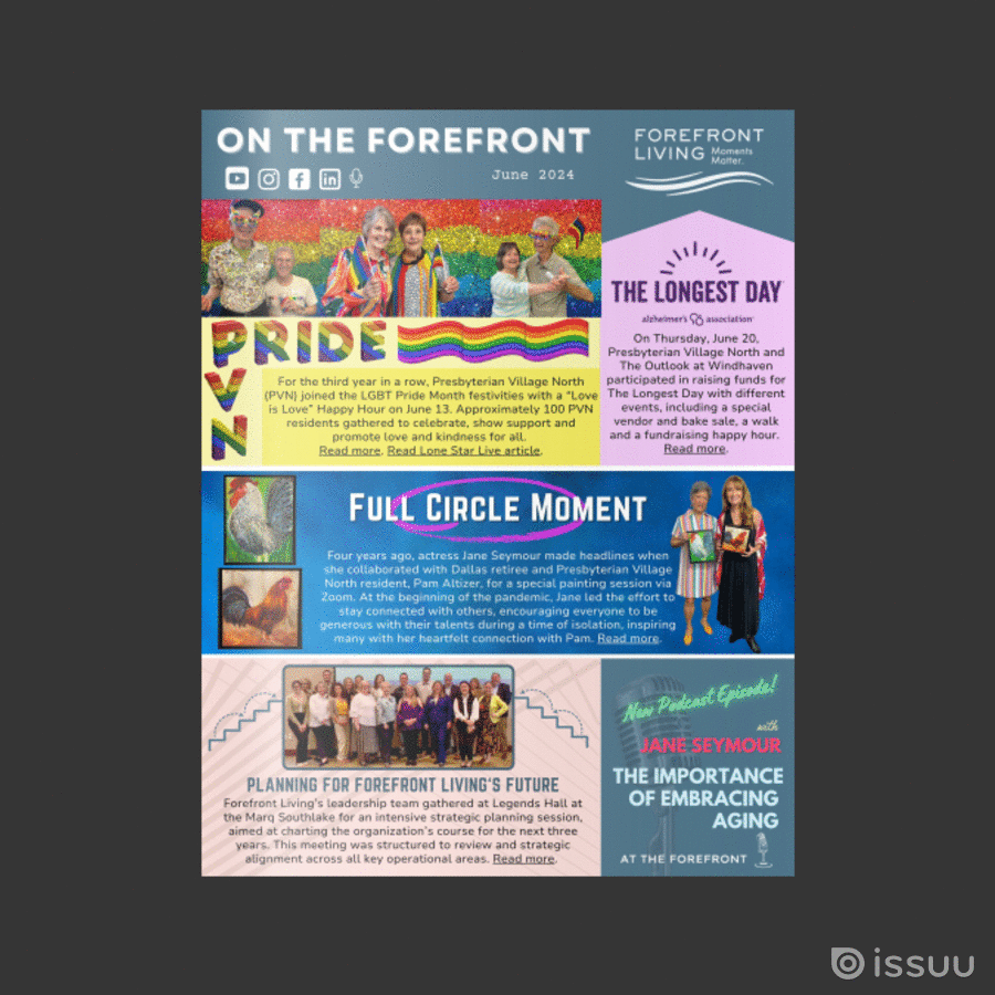 On the Forefront – June 2024 Newsletter Posted on June 25, 2024March 30, 2026 Click here to view the June issue of Forefront Living’s newsletter.