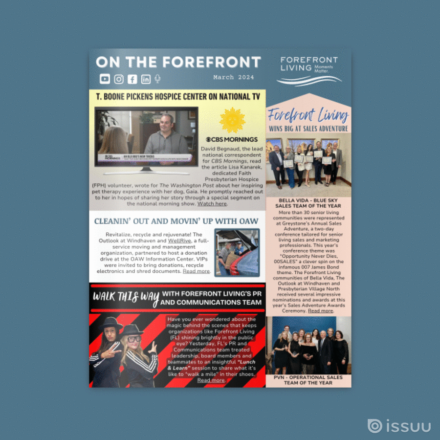 On the Forefront – March 2024 Newsletter Posted on March 26, 2024March 30, 2026 Click here to view the March issue of Forefront Living’s newsletter.