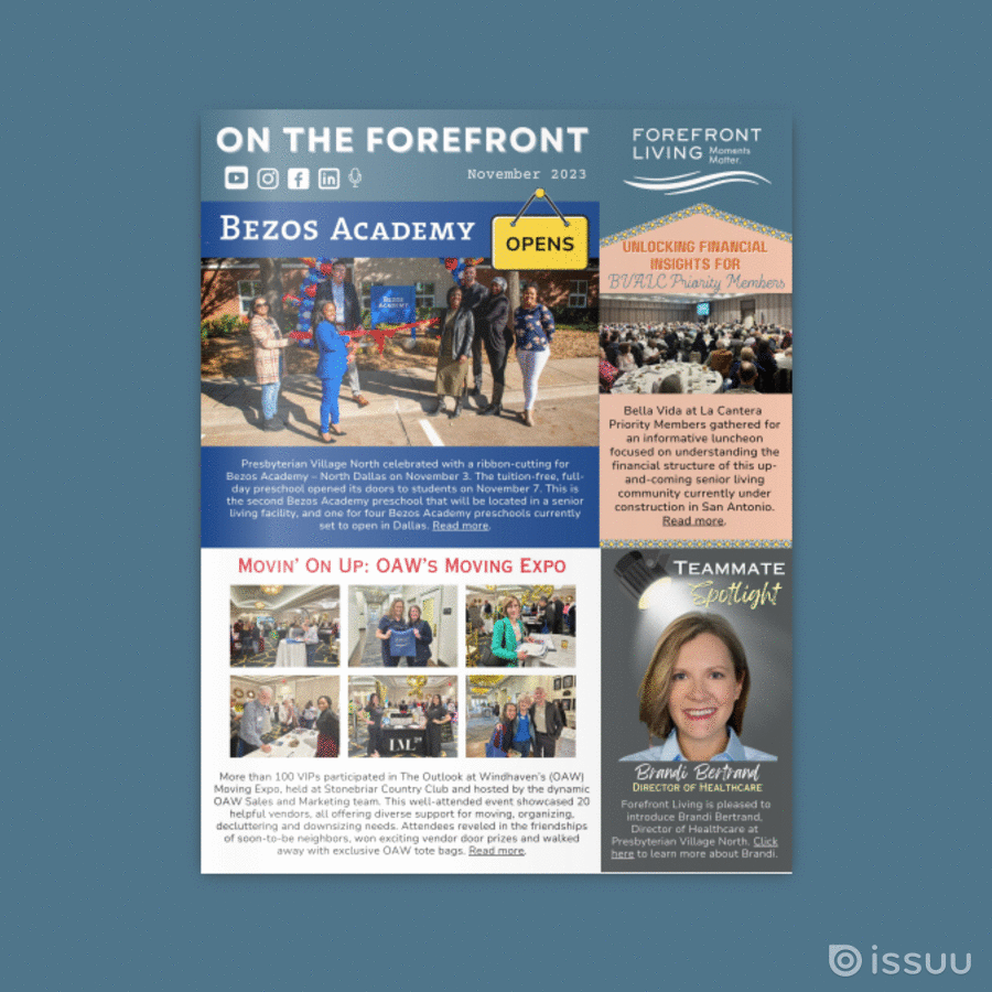 On the Forefront – November 2023 Newsletter Posted on November 28, 2023March 30, 2026 Click here to view the November issue of Forefront Living’s newsletter.