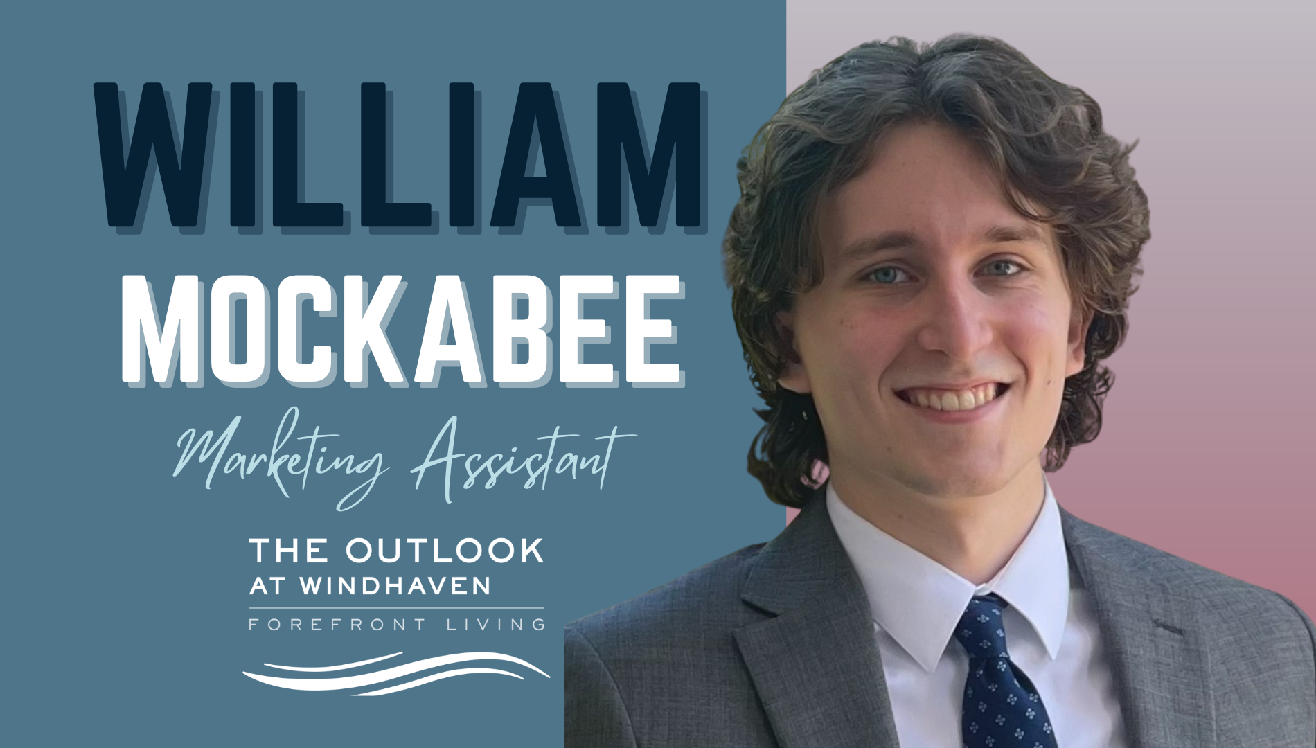 William Mockabee is the newest teammate to join the dynamic Outlook at Windhaven (OAW) Sales and Marketing team, serving as Marketing Assistant, a role he was excited to begin on January 2. In his position, some of his tasks include assisting with processing files, event coordination and serving as the helpful face and voice of inbound phone calls and visitors to the Information Center. Forefront Living is grateful for enthusiastic teammates like William, who are committed to providing excellent customer service while establishing a vibrant community. We sat down with William to learn more about him through a fun question and answer session. Read about William below.